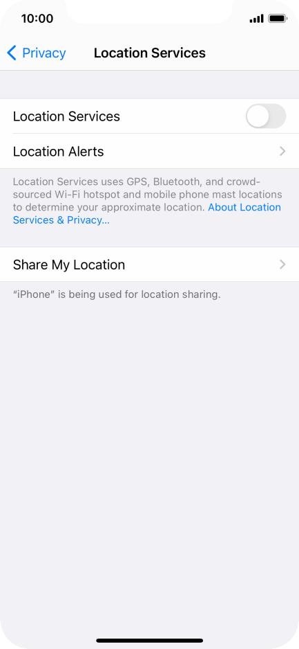 Tap the indicator next to Location Services to turn the function on or off. If you turn on the function your mobile phone can find your position using GPS. Tap the Significant Locations switch to turn on or off.